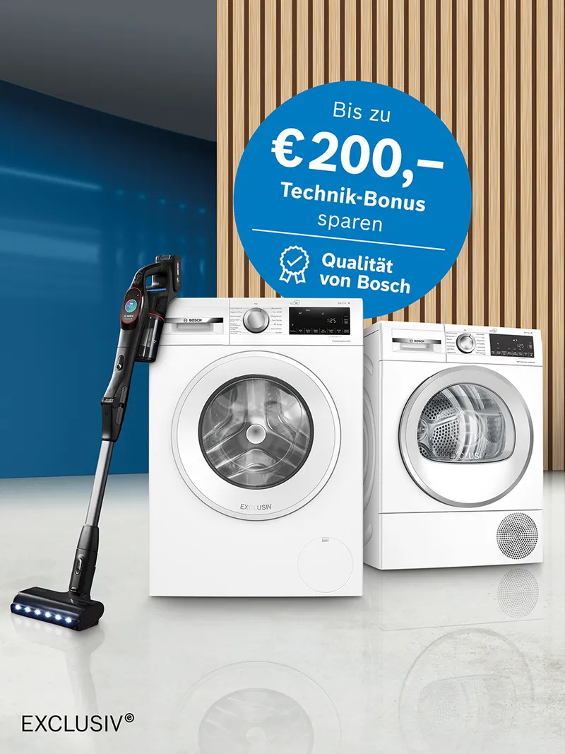 Erhalte bis zu € 200,- Cashback beim Kauf eines Bosch EXCLUSIV Aktionsgeräts.