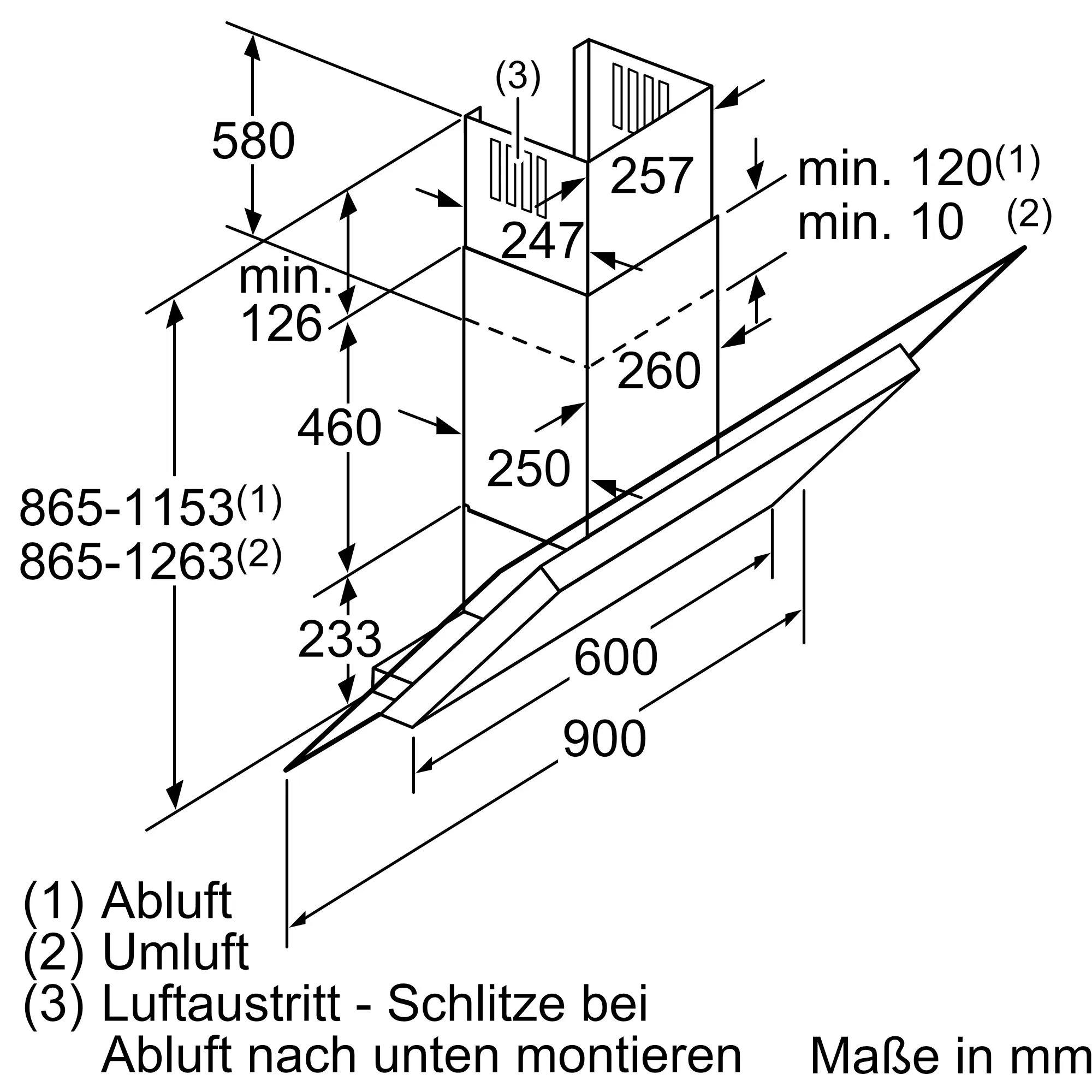 Abluft, Umluft (Sonderzubehör separat erhältlich)