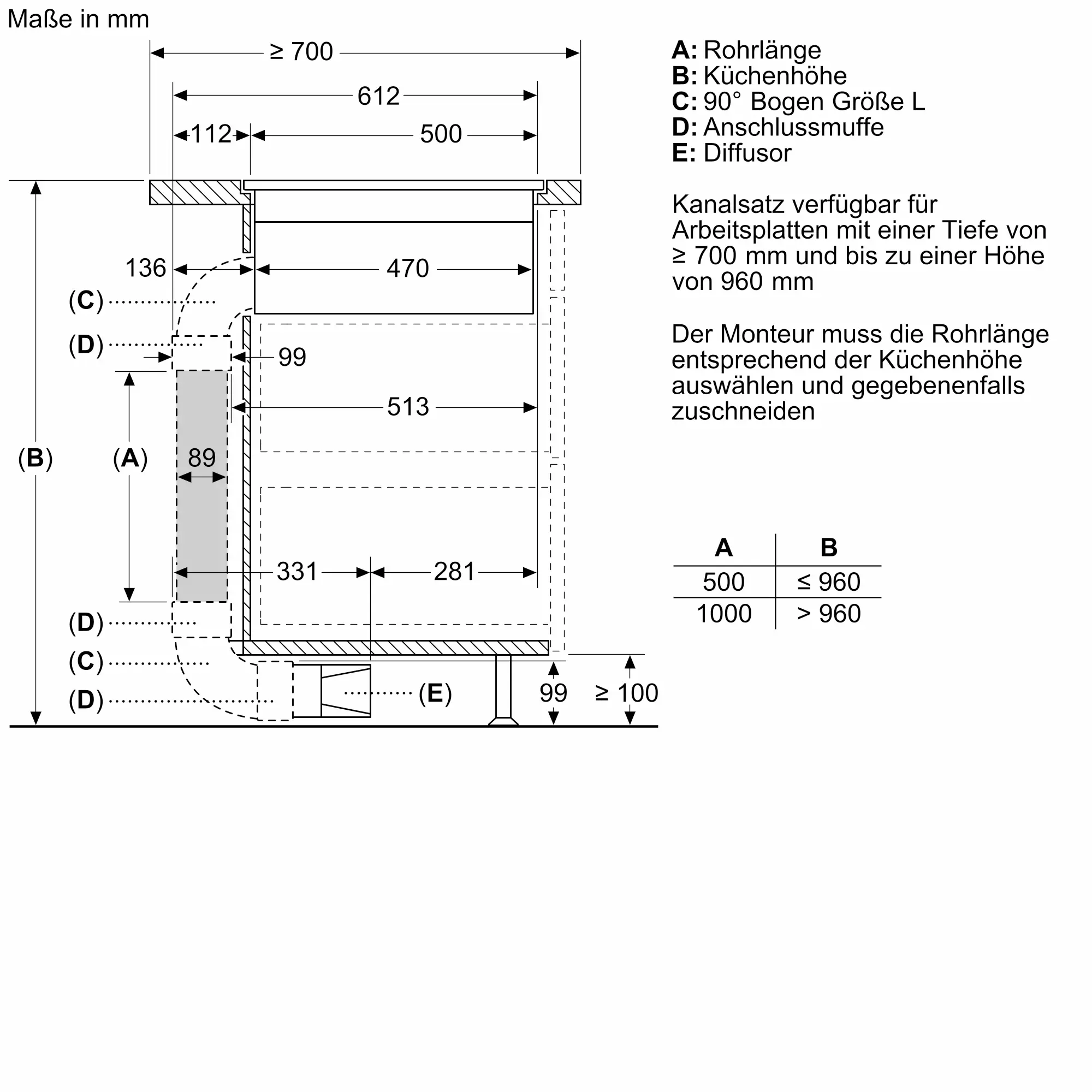 Abluft, Umluft (Sonderzubehör separat erhältlich)