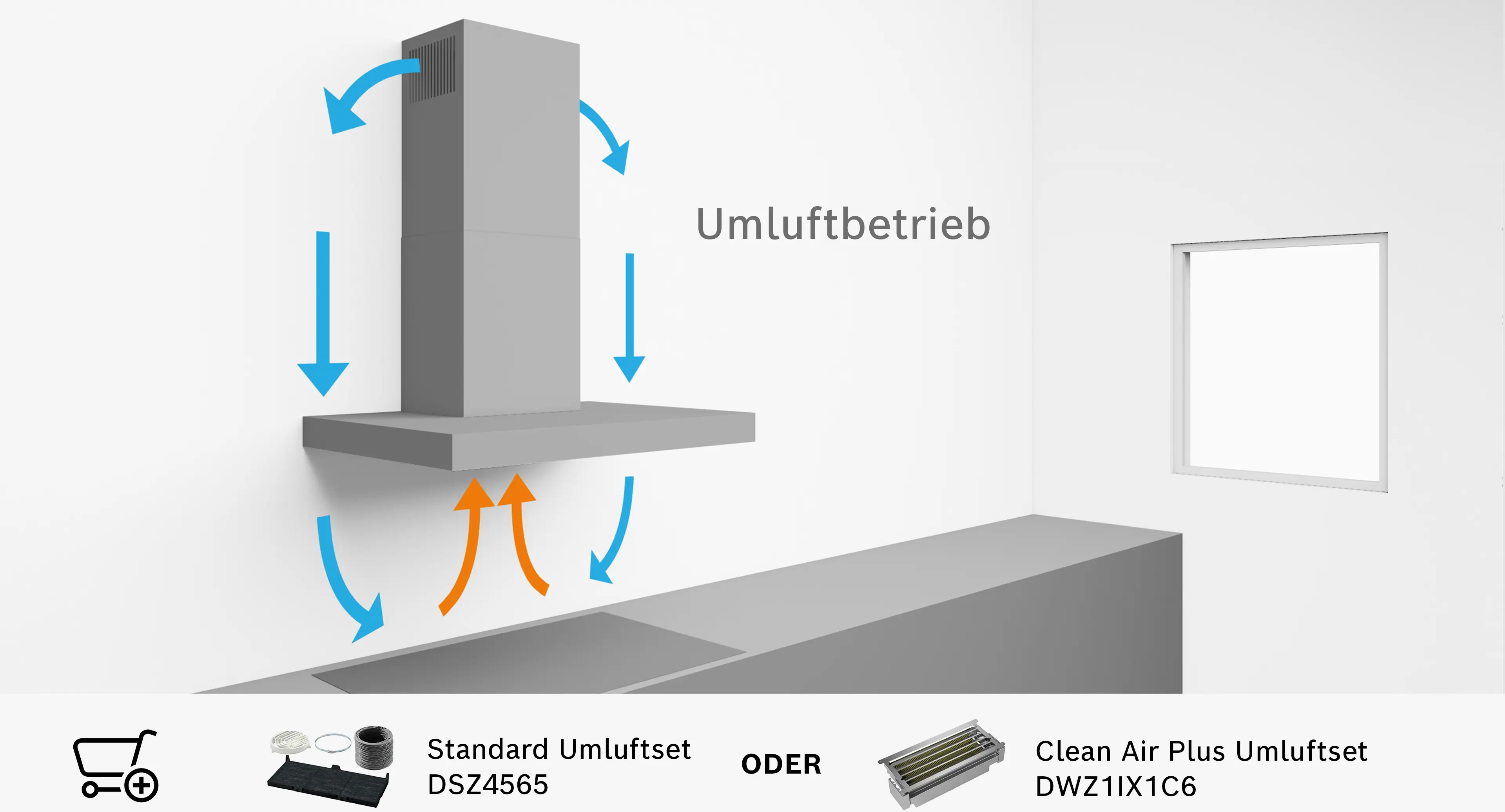 Abluft, Umluft (Sonderzubehör separat erhältlich)
